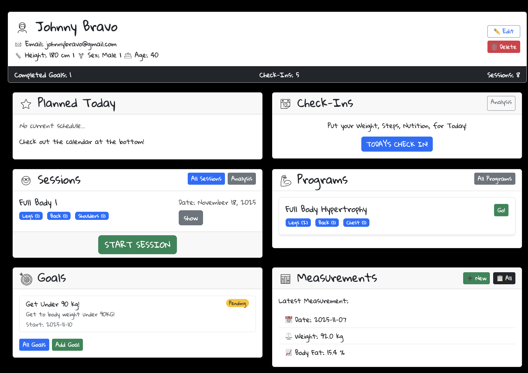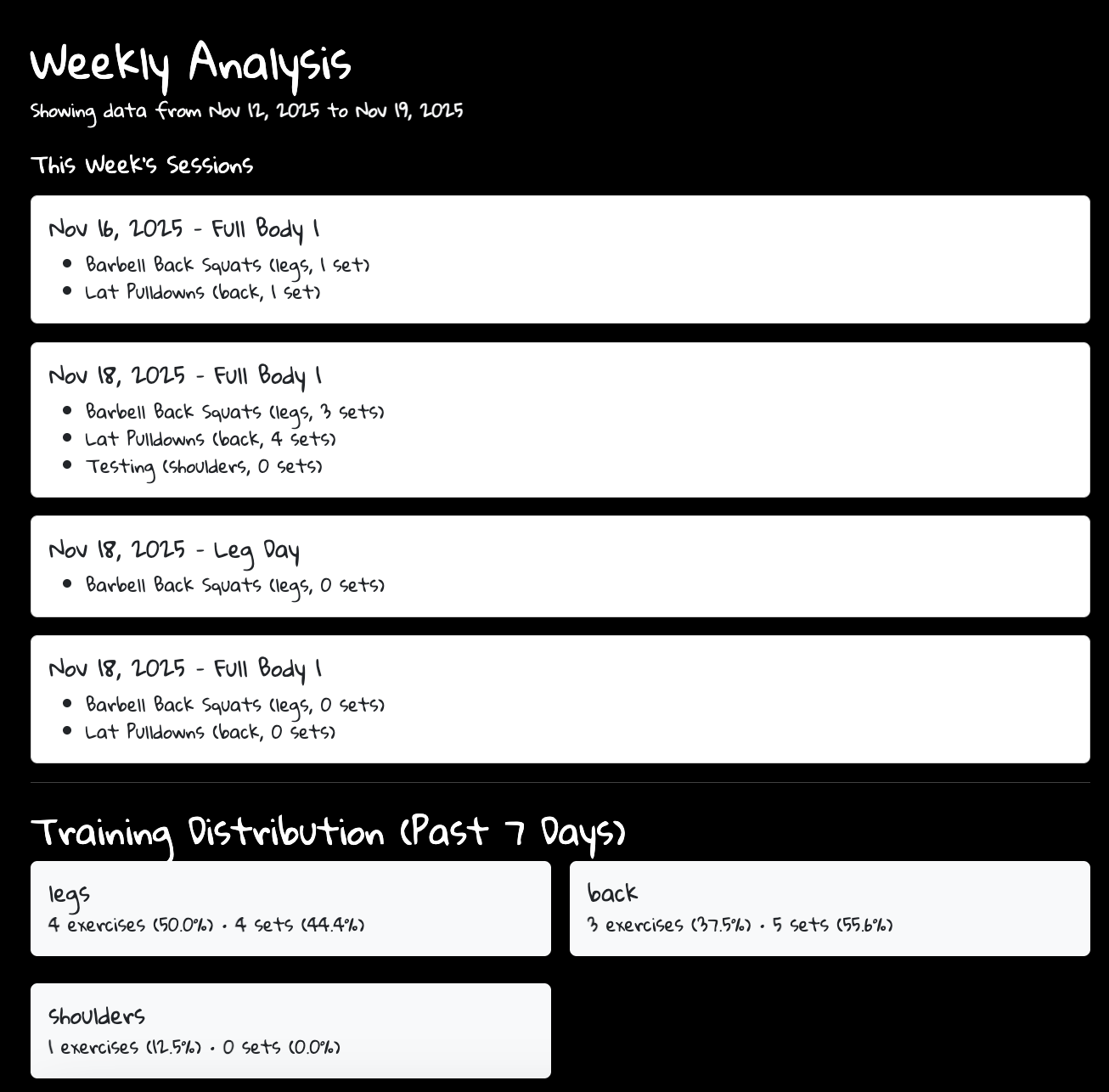 Track weight changes, training volume, and session frequency — all beautifully visualized.